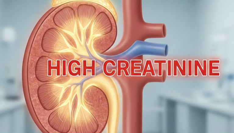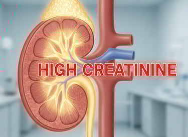 High Creatinine is a condition where creatinine levels in the blood are elevated, indicating reduced kidney function or kidney stress. It may be caused by dehydration, infections, medications, or underlying kidney disease. Early evaluation and timely treatment can help prevent further kidney damage.