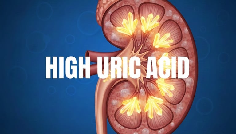High Uric Acid is a condition where excess uric acid builds up in the blood. It can be caused by diet, dehydration, kidney problems, or metabolic disorders. Early treatment and lifestyle changes can help prevent joint pain and kidney-related complications.